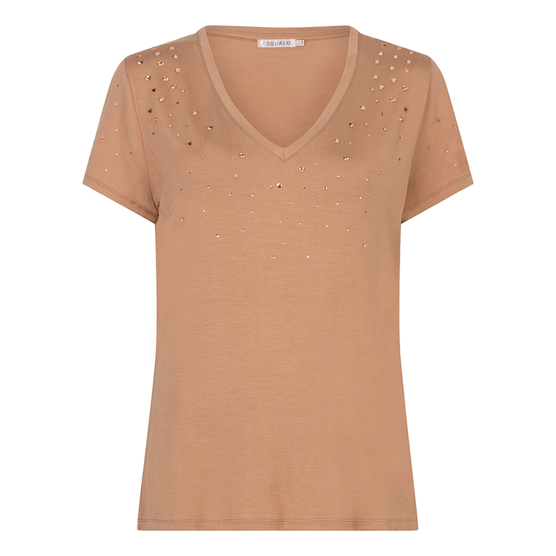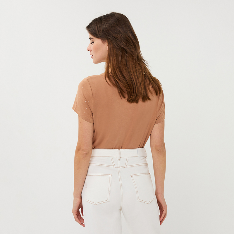 T-shirt en jersey léger à manches courtes cap, encolure en pointe.