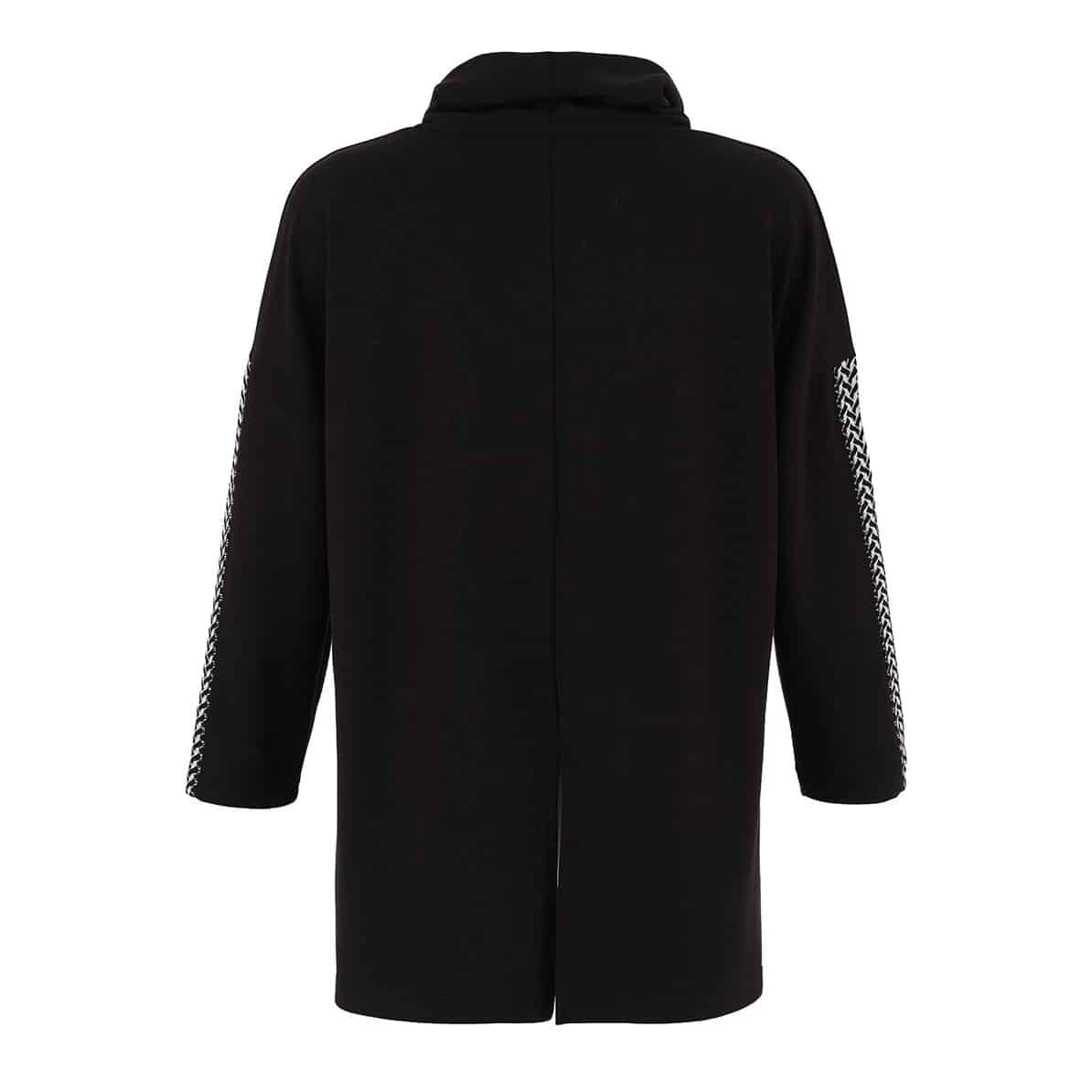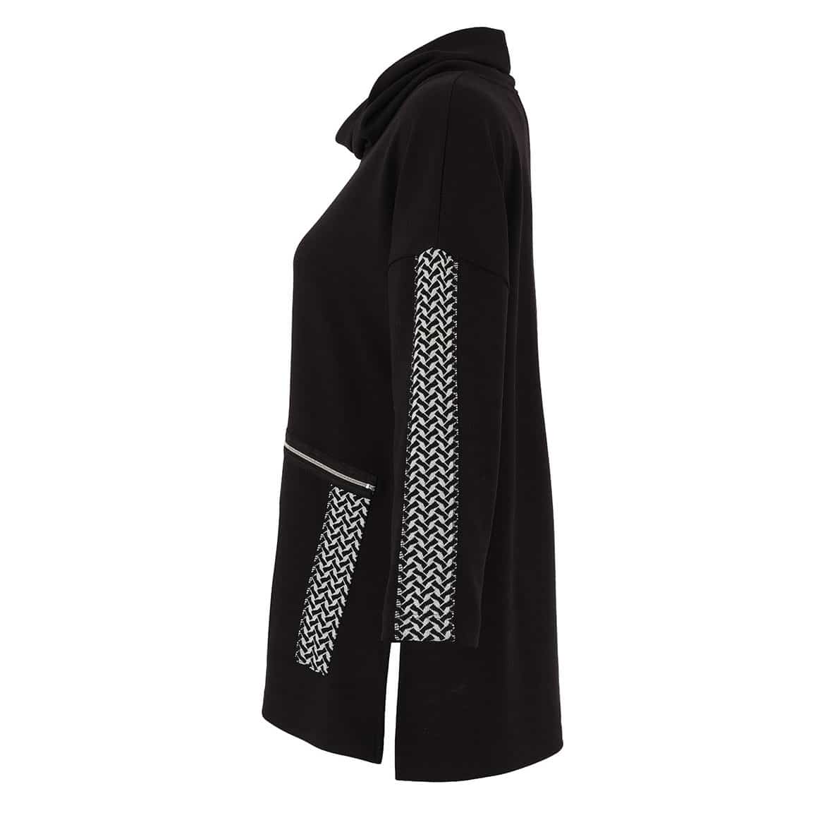 Modèle très ample ouvert de chaque côté, grande poche plaquée sur un côté avec fermoir et motif noir et blanc,.