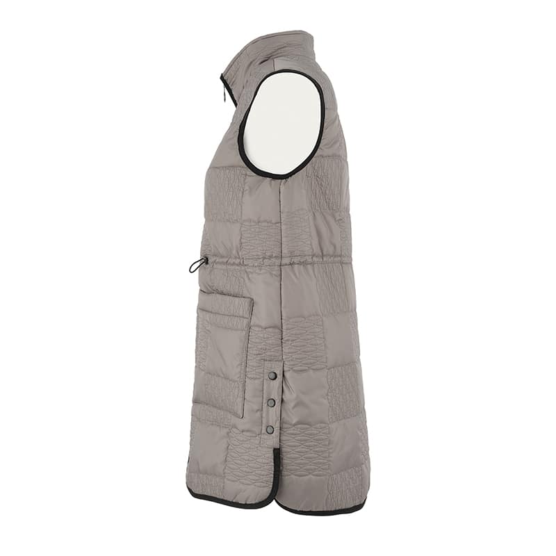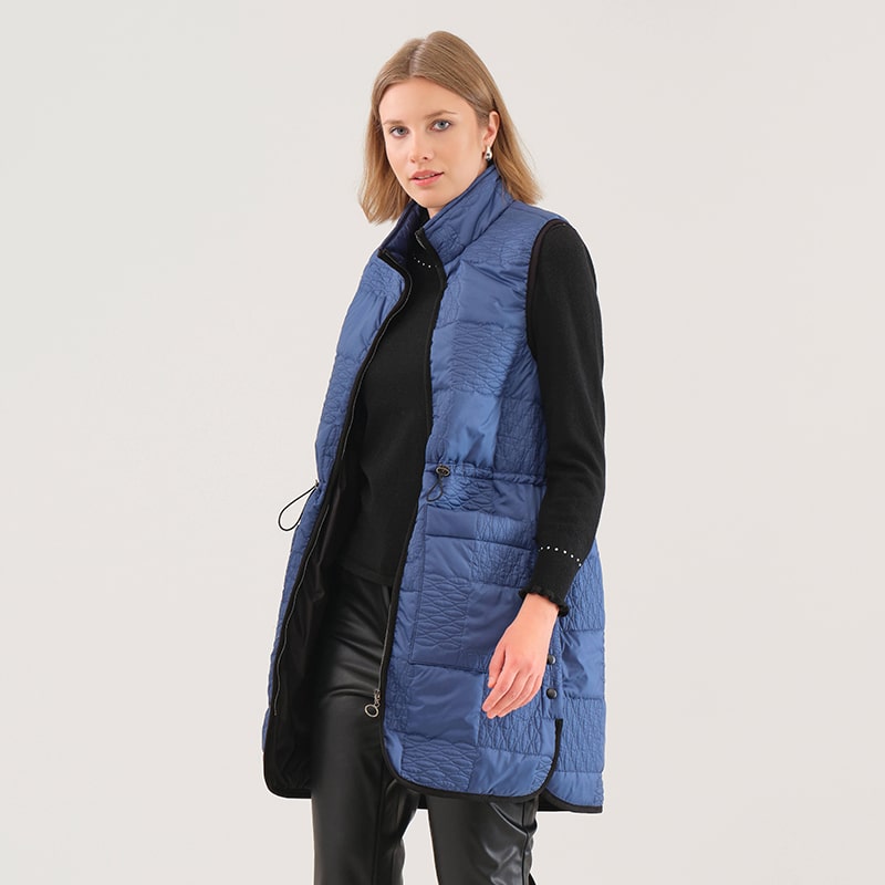 Veste sans manches, matelassé originale et légere, col montant avec fermeture éclair.