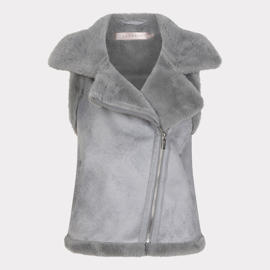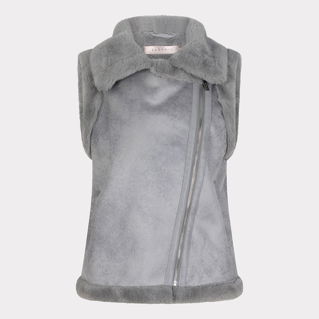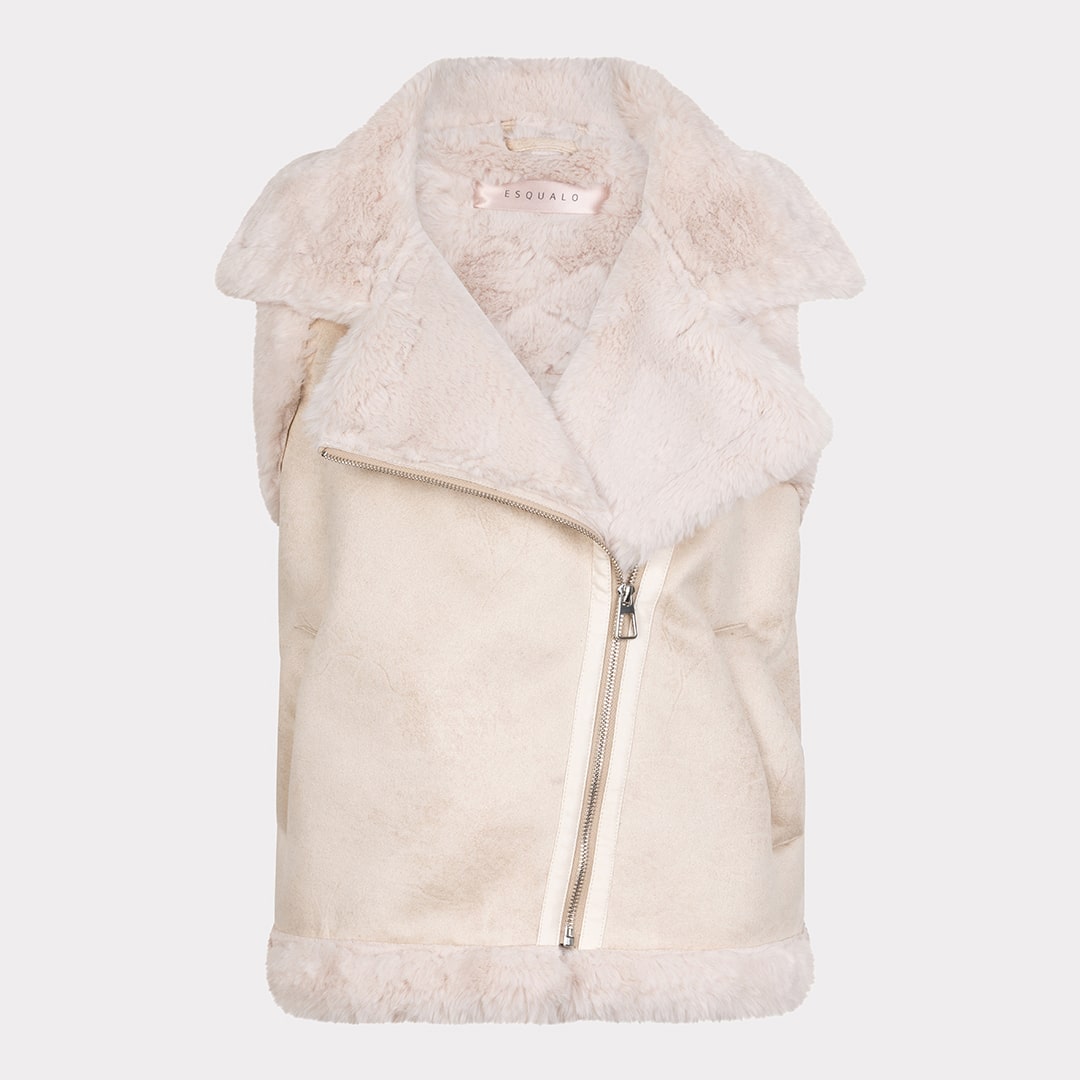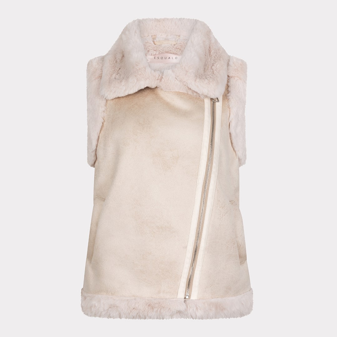 Veste sans manches, fermeture éclair en biais, grand col.