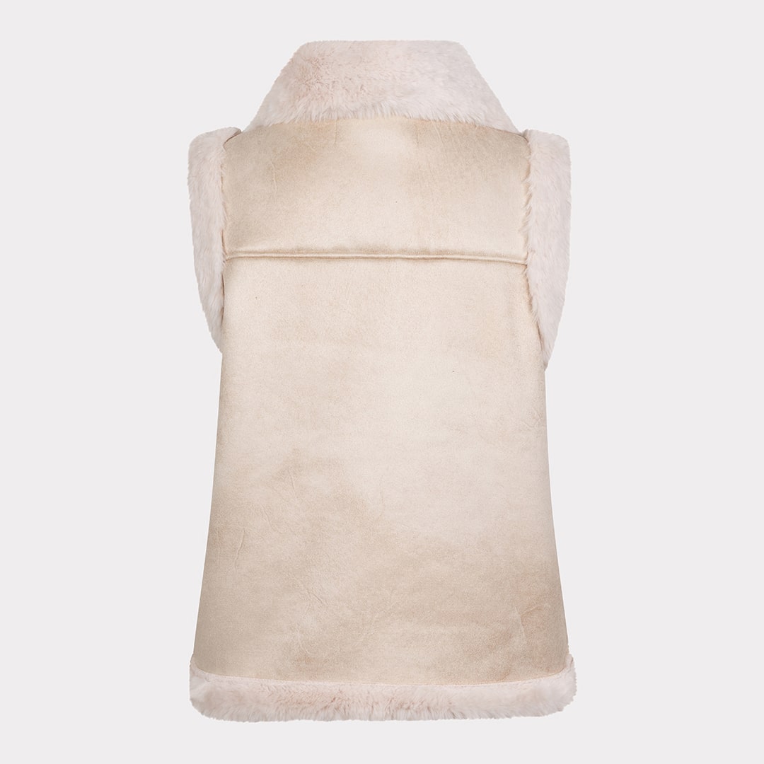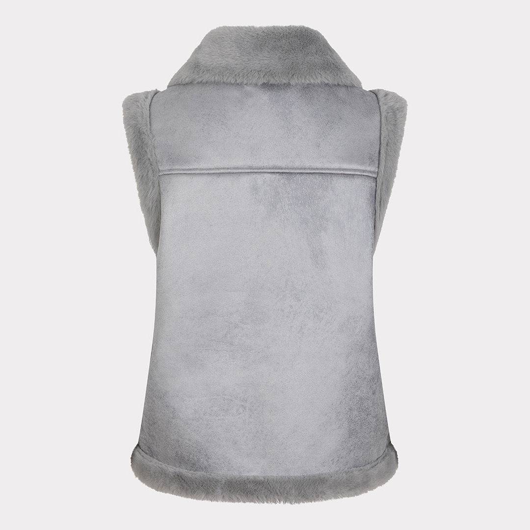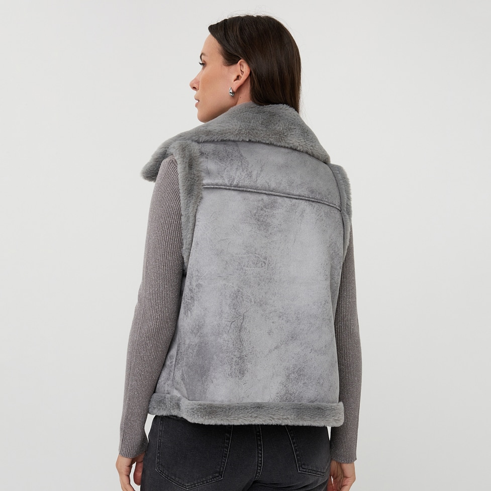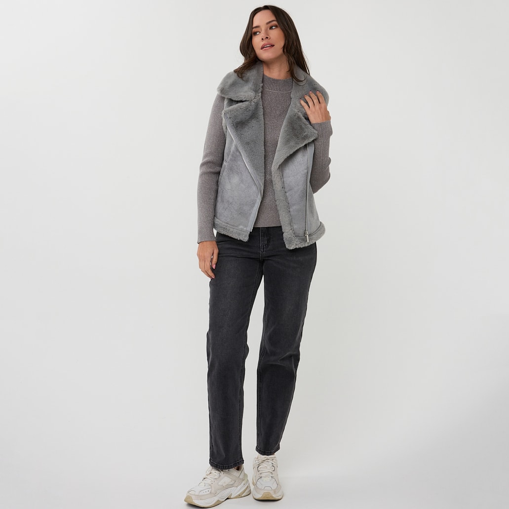 Veste sans manches, fermeture éclair en biais, grand col.
