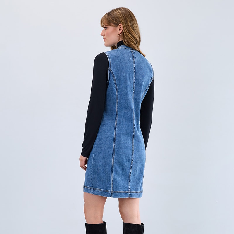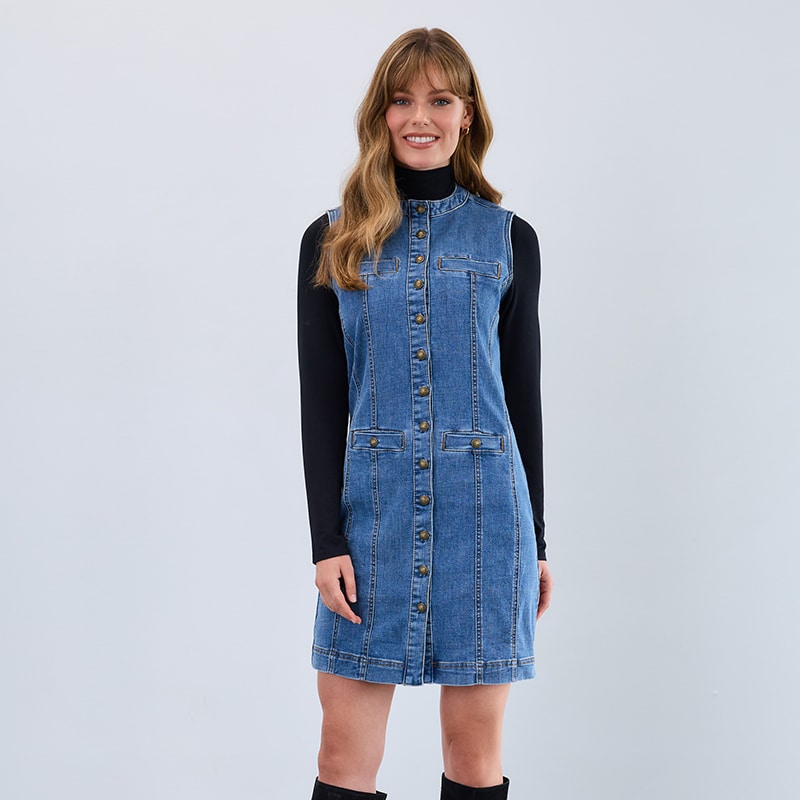 Modèle légèrement ajusté, boutonné, peut se porter en robe style jumper.