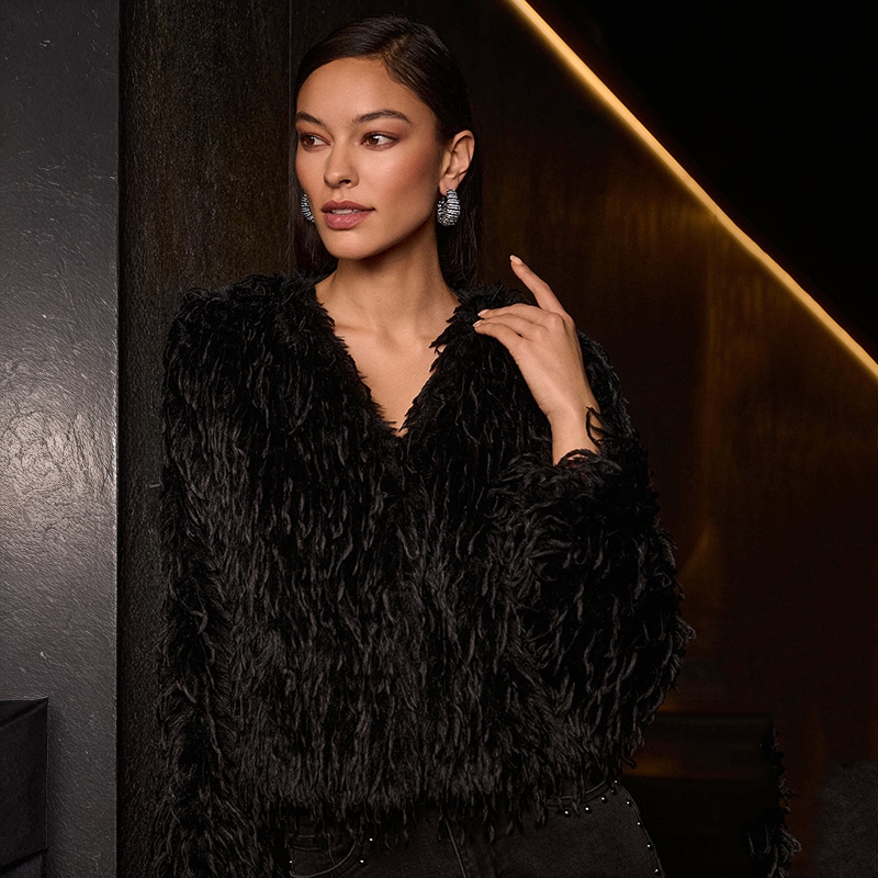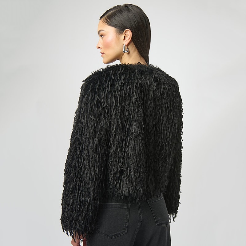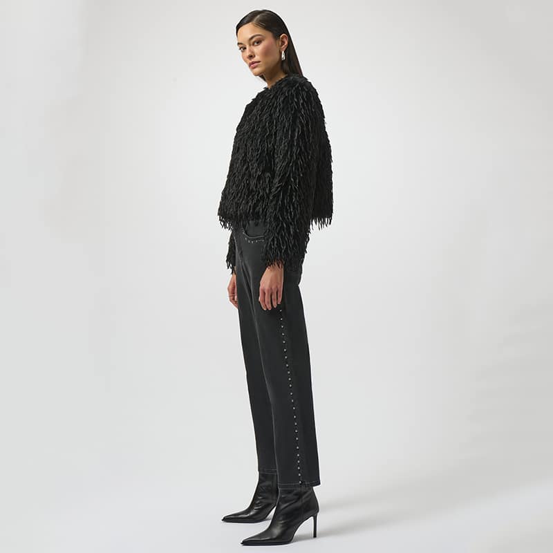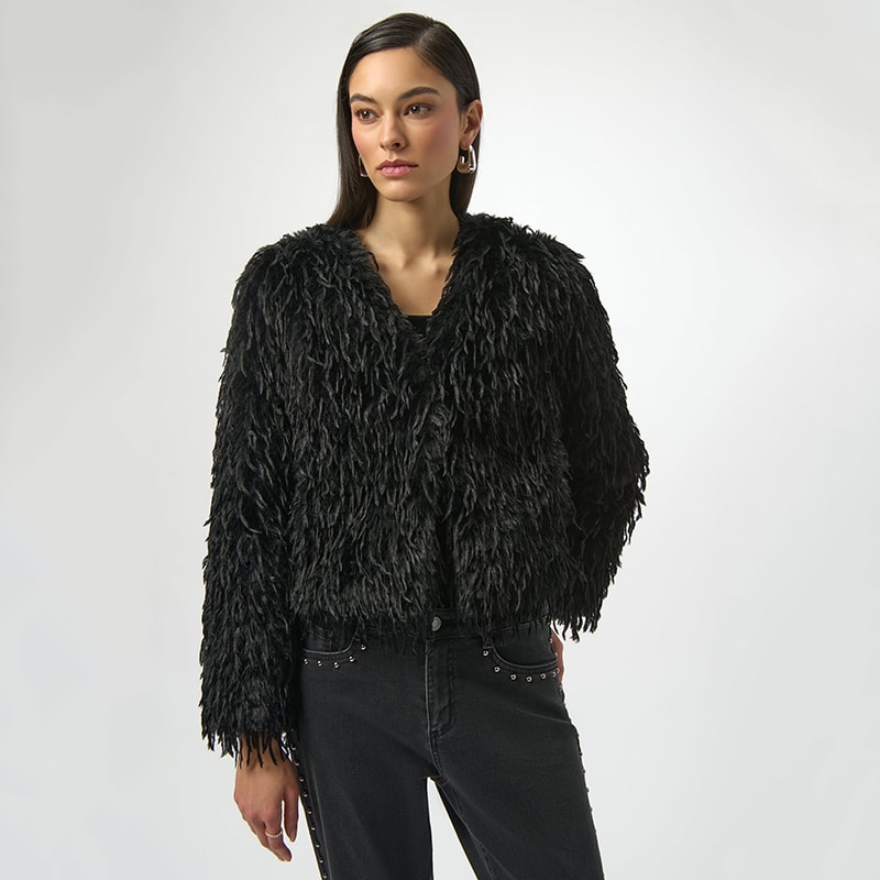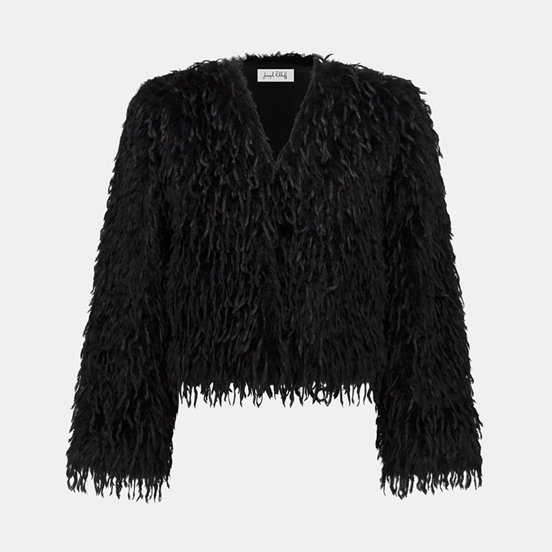 Modèle droit sans ajustement, en fausses plumes d’autruche qui lui donne un style unique et original.